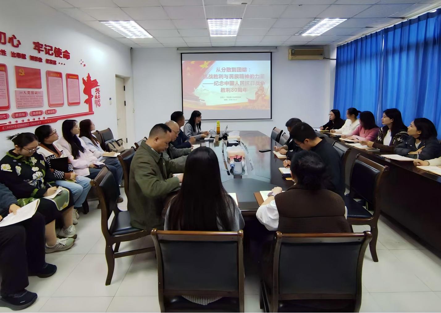 为纪念中国人民抗日战争暨世界反法西斯战争胜利80周年,弘扬伟大抗战精神,学院于10月23日上午特邀马克思主义学院理论宣讲团教师冯薇开展专题讲座。冯老师以《从分散到团结--抗战胜利与民族精神的力量》为题,通过鲜活史料与深刻理论,带领全体党员重温抗战岁月,感悟民族精神的力量。