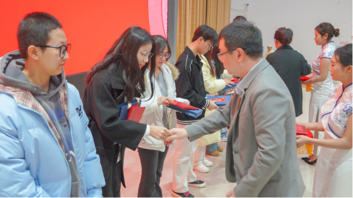 会上,唐学英为新生讲授开学第一课;学生代表狼武嫏橄措、林静分别分享了学习感悟与未来展望,表达了对两校培养的感激之情与努力学习的决心;与会领导为优秀学员颁发了荣誉证书,并为新生代表颁发了入学通知书、佩戴成都信息工程大学校徽。