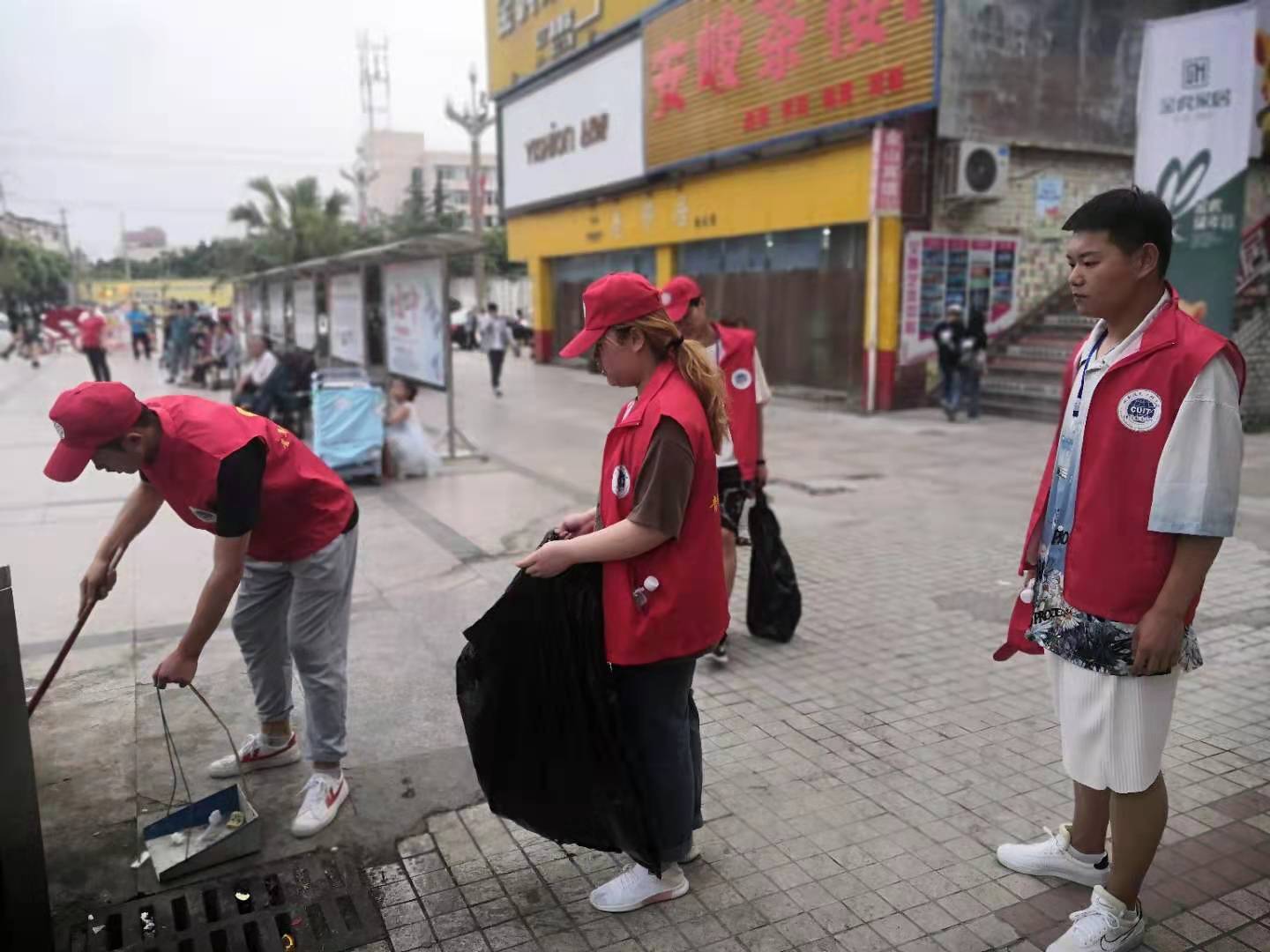 为纪念”五.四”运动102周年,引导全院广大团员青年继承和发扬“五.四”精神,展现志愿者的精神风貌,5月4日,我院青年志愿者协会在同安街道开展了“绿色家园.你我共建”的活动,志愿者们协助环卫工人打扫街道卫生,给环卫工人和外卖小哥发放矿泉水,受到广大群众的一致好评。