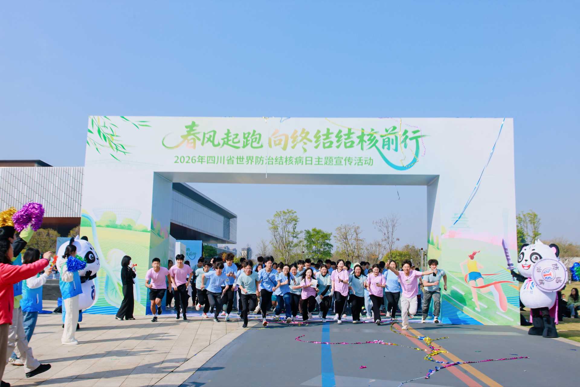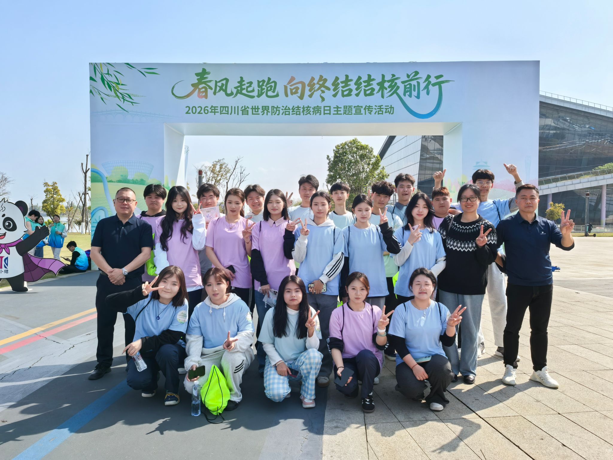 四川省2026年“世界防治结核病日”主题宣传活动于3月24日在成都市龙泉驿区东安街道书香广场拉开帷幕。此次活动由四川省疾病预防控制局、成都市卫生健康委员会等单位联合主办,以“春风起跑,向终结结核前行”为主题,将健康跑与趣味科普互动相结合,凝聚社会各界力量,共筑结核病防控防线。来自四川师范大学、成都大学、四川财经职业学院、成都航空职业大学、国际标榜职业学院、四川旅游学院等11所高校的200多名选手参加本次比赛,我院精心选拔20名学生代表学校,全程参与活动,以青春担当传递健康理念。