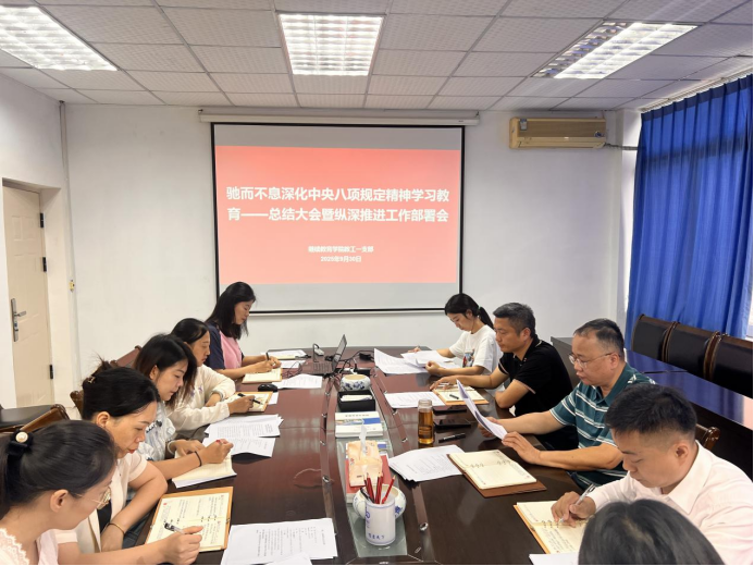 9月30日上午,教工一支部召开深入贯彻中央八项规定精神学习教育总结会,深入学习贯彻习近平总书记关于作风建设的重要指示精神,全面落实上级部署要求。会议由支部书记邹靳主持。