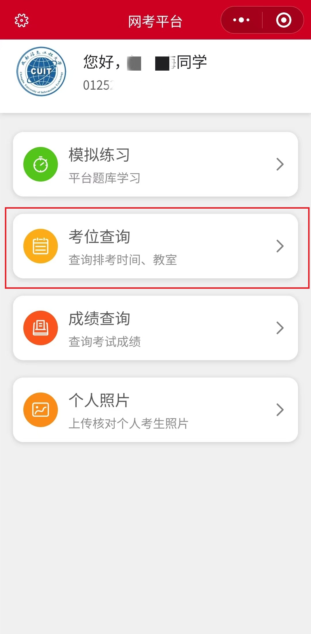三、点击“考位查询”,即可获取本人具体考位信息。